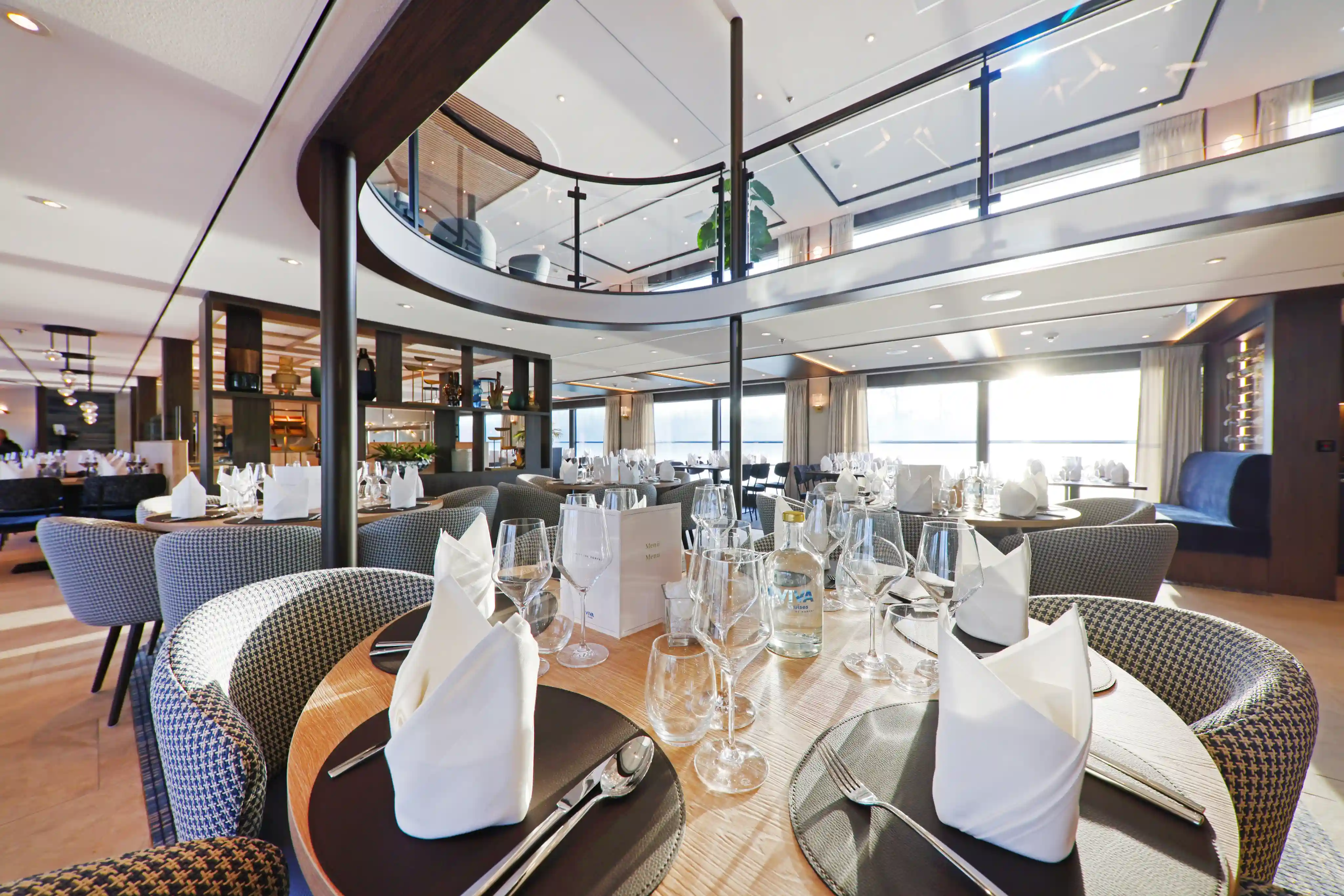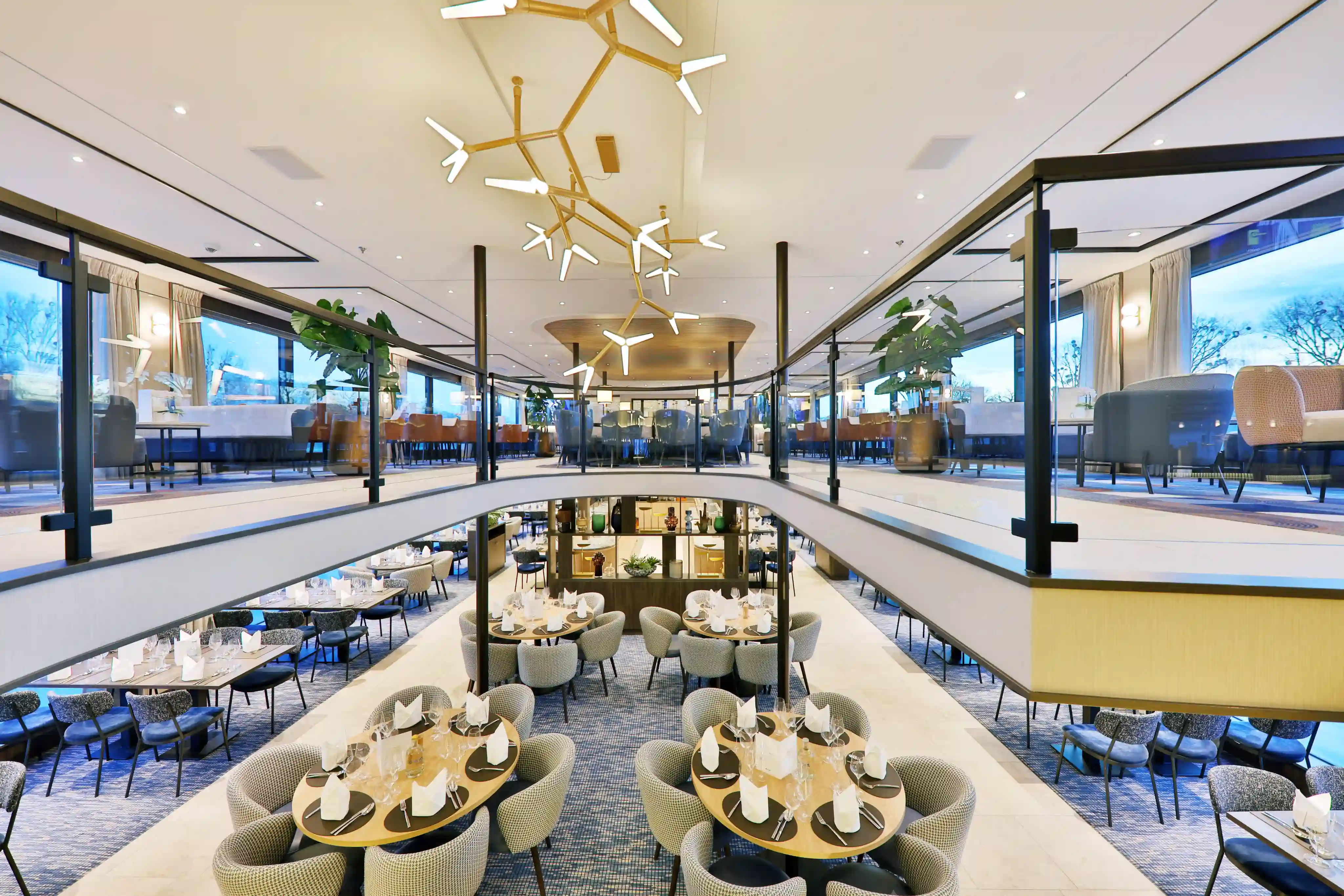 Aan boord vindt u onder meer een panorama-lounge, meerdere restaurants, een zonnedek met zit- en schaduwzones, fitness en wellness-voorzieningen. De maaltijden zijn verfijnd en bereid met lokale ingrediënten en regionale specialiteiten.